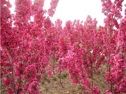 3、壽星桃:屬矮化種,花小型、復瓣,白色或紅色,枝條的節(jié)間極短,花芽密生。