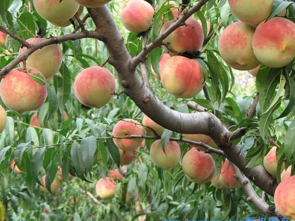 3、圓紅桃:大棚栽植4月中上旬成熟,露天6月中旬成熟,成熟后掛樹30天至7月中旬也不軟不落,貨架期極長,極耐儲運,大受客商歡迎。果實圓形有微尖,果重220克,最大330克。著色極早,全紅,內(nèi)膛果也全部上滿色。桃毛少,采前自行脫去桃毛,極美。早、大、紅、甜、硬五大優(yōu)點都具備的早熟桃。